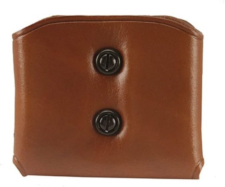 The DMC is an exceptional wrap-around design featuring two one-way snaps on back, allowing it to fasten to your belt vertically. It also includes two tension screw adjustments on front, providing a precision fit. It is constructed of premium saddle leather and is designed to fit belts 1" - 1 1/4" through belt slots and 1 1/2" - 1 3/4" through the belt channel. This ambidextrous design is available in tan, Havana brown, and black.