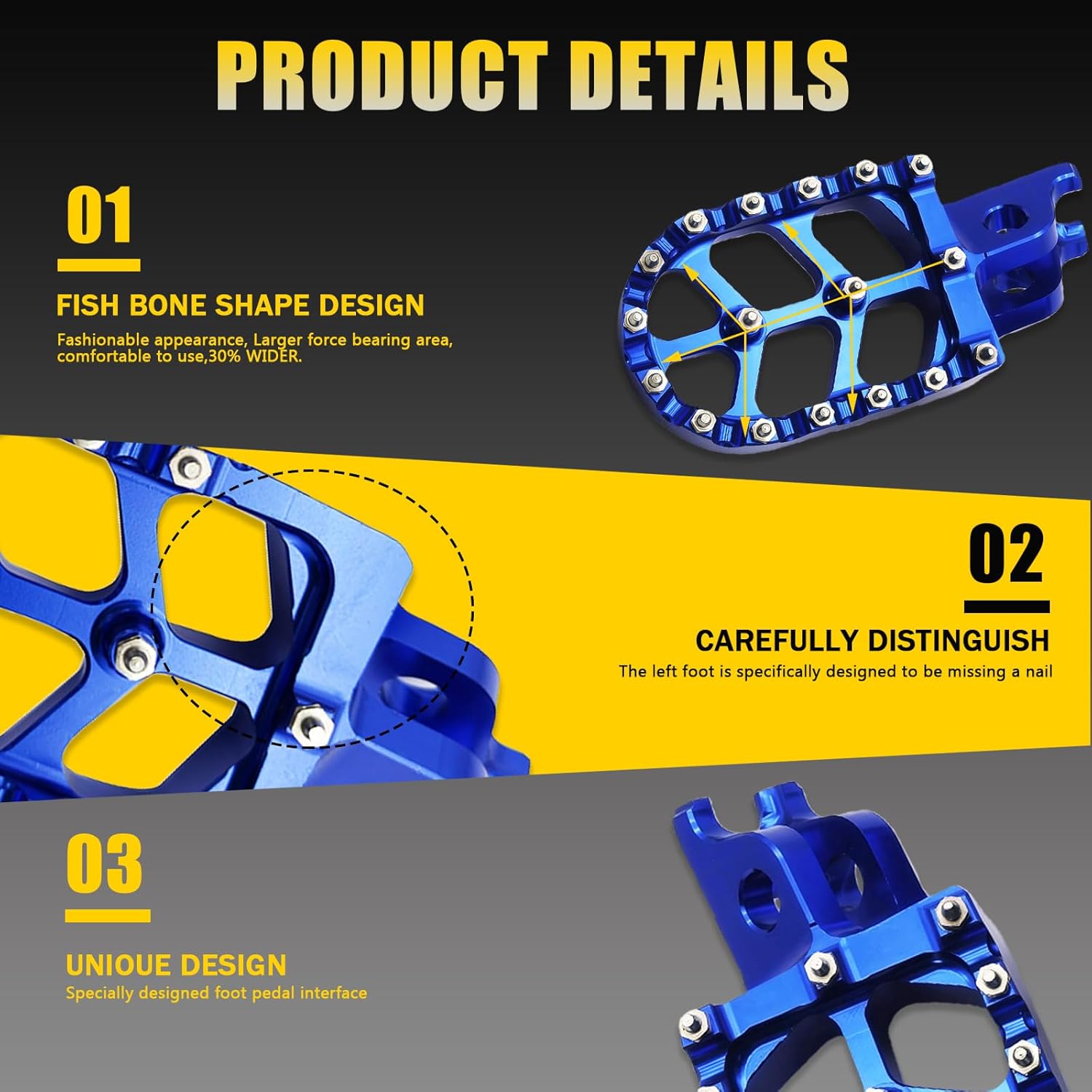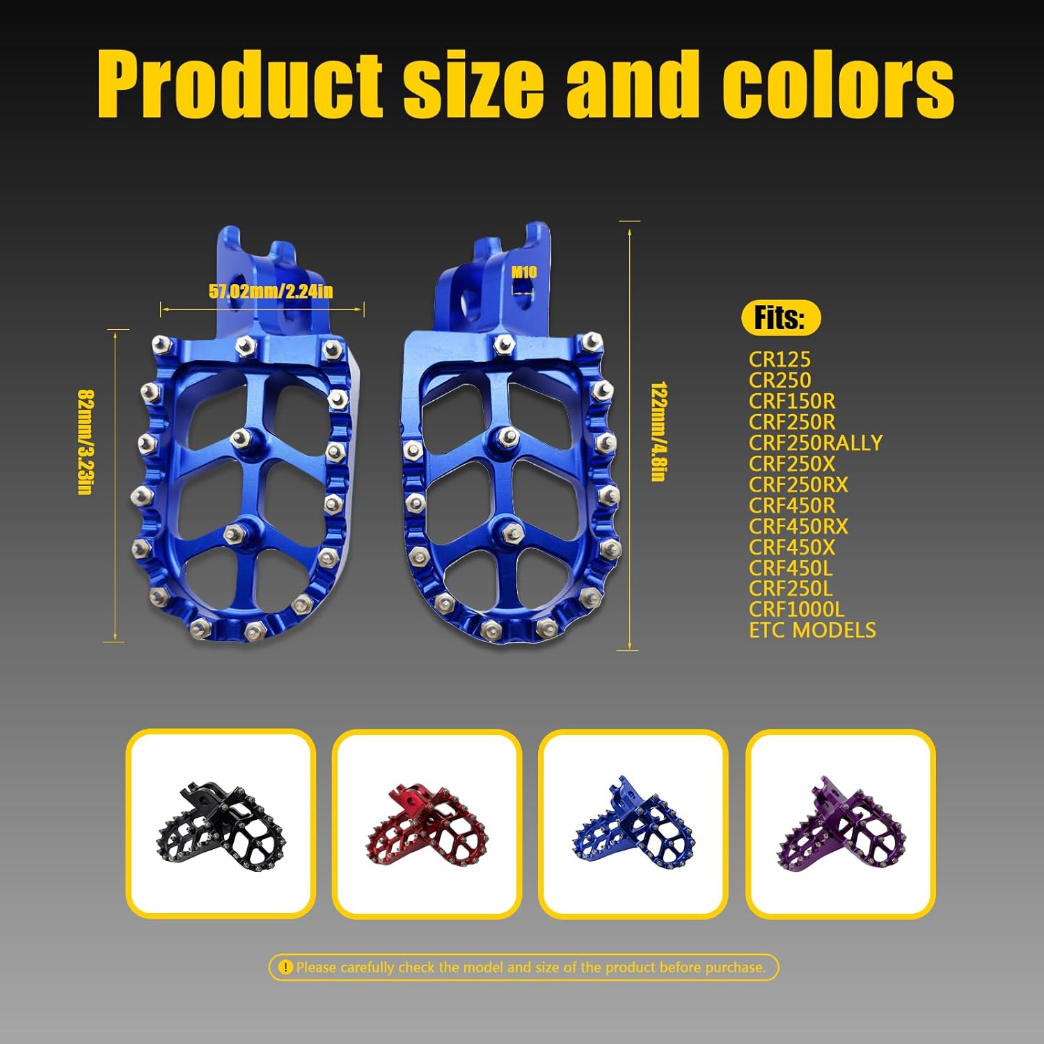| Included Components | 2PCS Dirt Bike Foot Pegs |